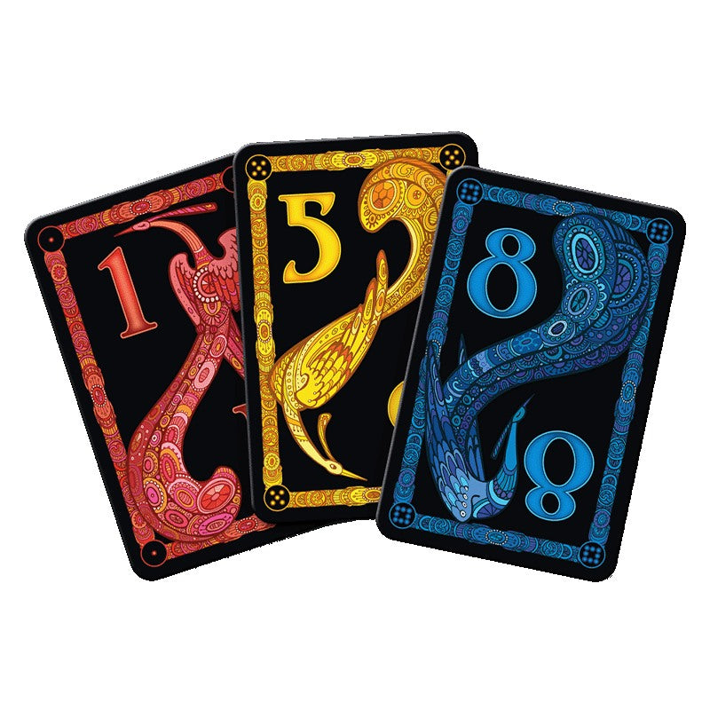 Blaze is based on the classic card game Durak, known worldwide and originating in Russia. In Blaze, players try to get rid of their cards, but they have to do so in an extremely ingenious and unusual way. The player who plays out plays together with the next player but one, which leads to constantly changing alliances. In the end, the player who has collected the most feathers wins. Challenge the next player by playing cards of the same number. By playing higher cards, he can reject your cards. Extend the challenge together with your supporter by playing more cards of any number now on display. If this is successful, the challenged player must take all the cards played into their hand; otherwise, all the cards played are removed from the game. As soon as the draw pile is empty, it's down to the wire: who can get rid of their hand cards first?
