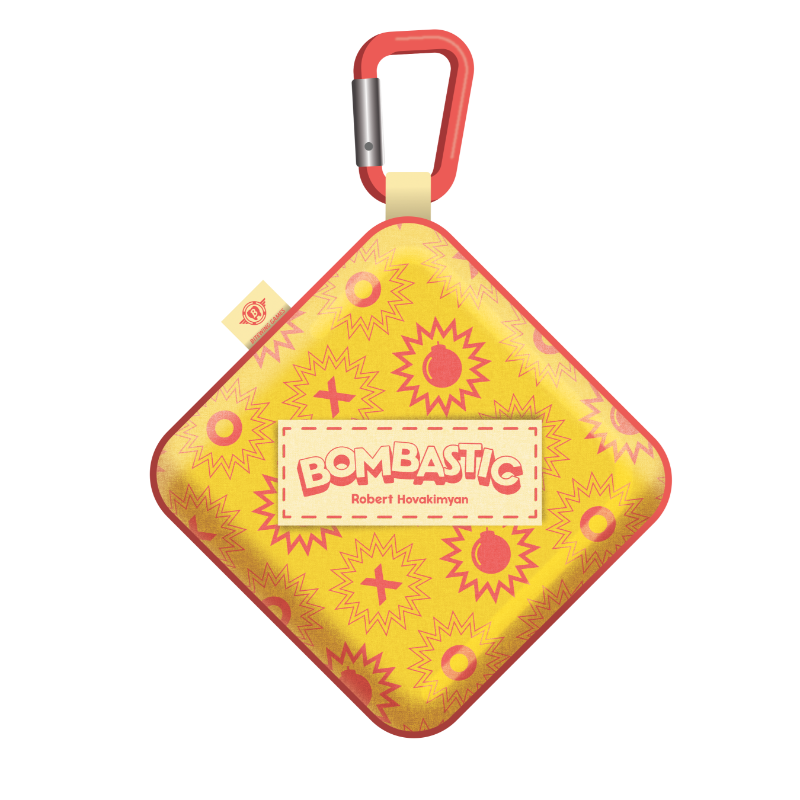 Bombastic is a spicy, five-minute, travel-friendly game for two players. One player is Xs, and the other is Os — pretty standard so far. But what you don't know can hurt you. Nine chunky tiles are shuffled face down into a 3×3 grid — 4 of them Xs, 4 of them Os, and the last? A ticking, delicate bomb. Can you find your tiles without blowing up?