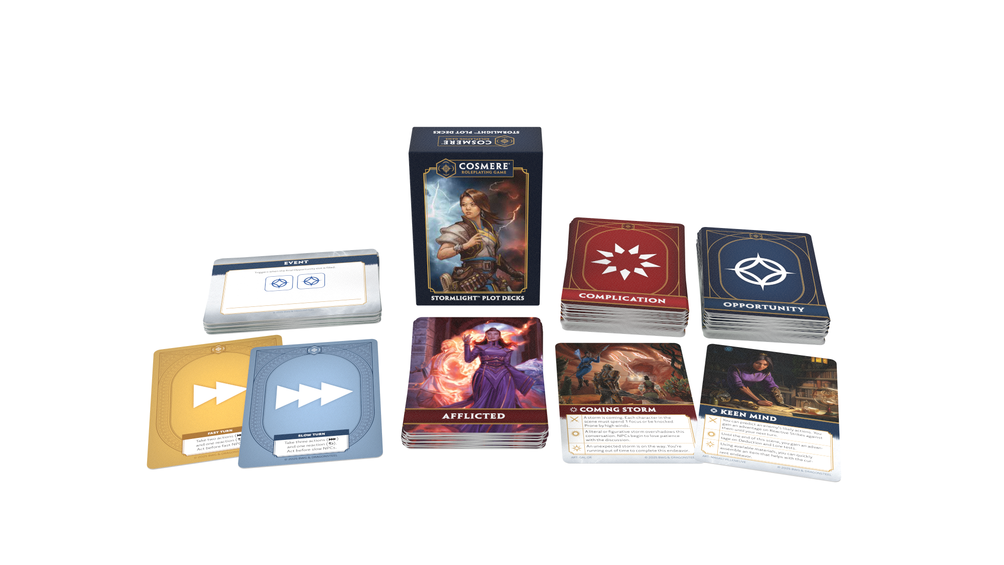 Cosmere RPG - Stormlight Plot Decks BrandBrotherwise Games Share Share Tweet Messenger Email Product form SKU: BGM9087 Barcode: 850068219087 Case Qty - 60 Release Date: 12/11/2025 RRP - $24.00 Inc. GST Please login for details and prices.