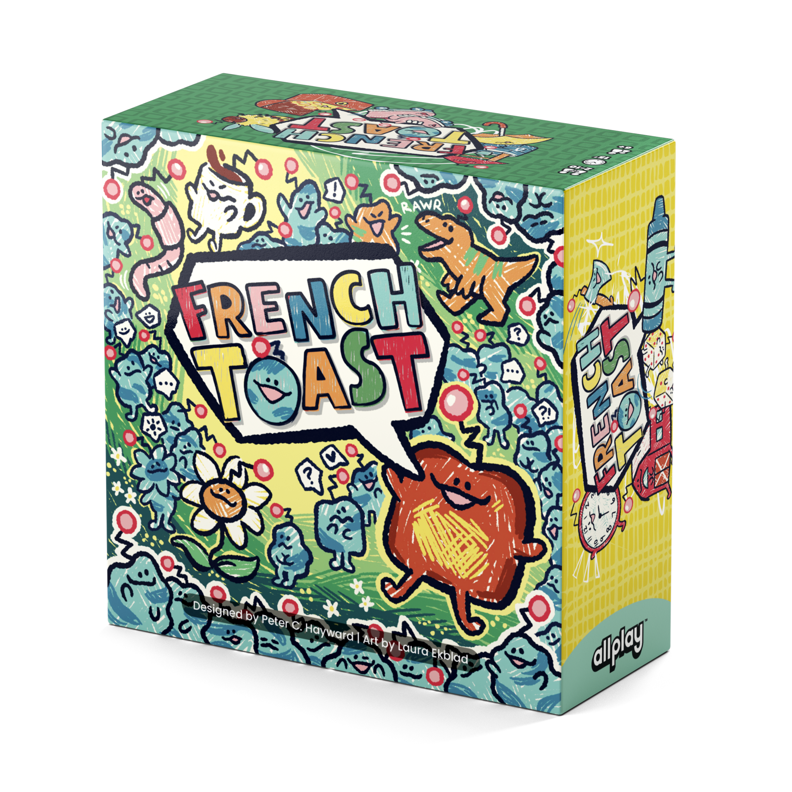 In French Toast, one player becomes the Toastmaster, holding a Secret Word for everyone to guess. The catch? They can only respond by repeating guesses — the newest one if it’s “closer,” or the best previous guess if it’s not. What counts as “closer” is up to the Toastmaster! Use clever guesses and teamwork to uncover the Secret Word in just six rounds.