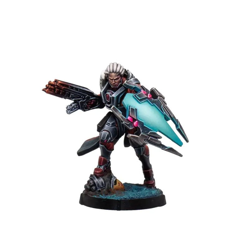 This box includes one miniature of Achilles with two arm options. One with AP Spitfire and another one with CC Weapon. A charismatic leader, regardless of which side he's on. Now at the head of Next Wave, he's an essential addition to your Next Wave Action Pack army.