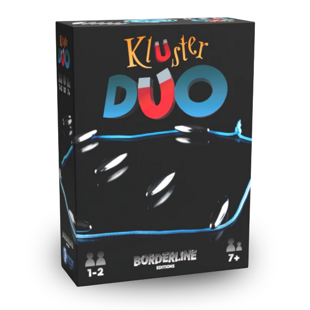 Kluster DUO is a Magnetic tabletop game enjoyable for all ages! Divide the magnet stones equally between players and lay out the lanyard. Players take turns laying their magnetic stones within the lanyard and the first person to place all their stone's wins. But be careful, stones will be attracted to each other and Kluster during a players turn, if this happens the player collects them! That's it, this instant classic provides a unique twist to the original.