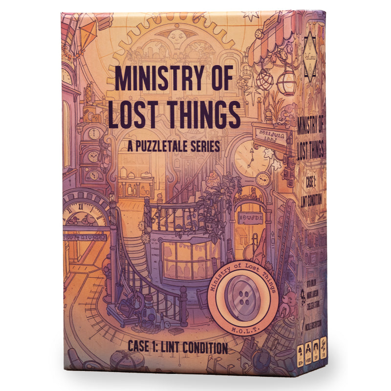 Lint Condition is the first case in the Ministry of Lost Things series. It contains four envelopes which need to be solved in sequence, each revealing more about the lost item and its companion as you solve the puzzles. At the end of each envelope, verify your solutions online in the M.O.L.T website portal to progress to the next step.