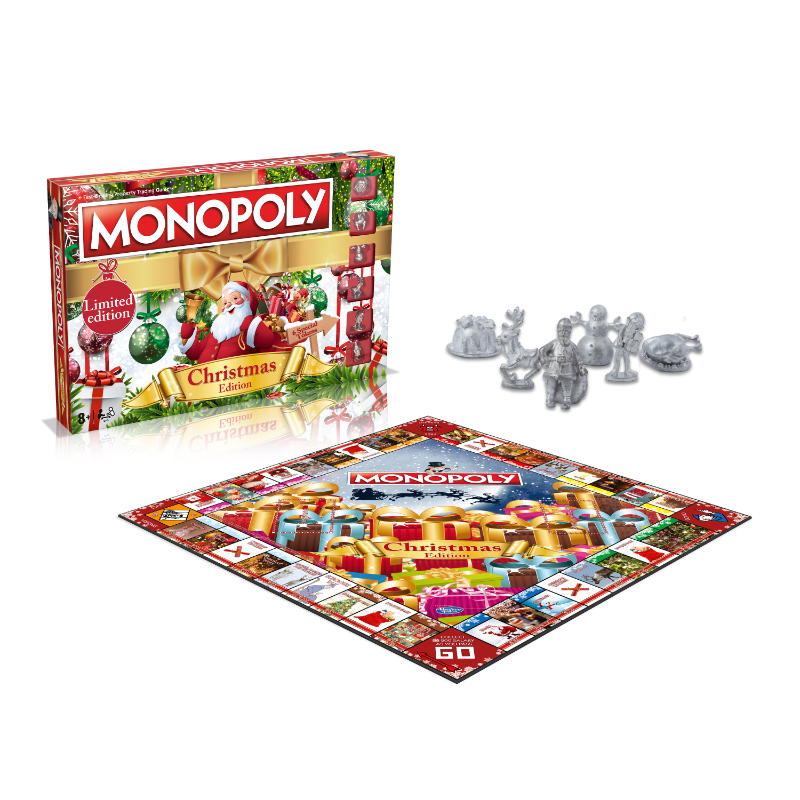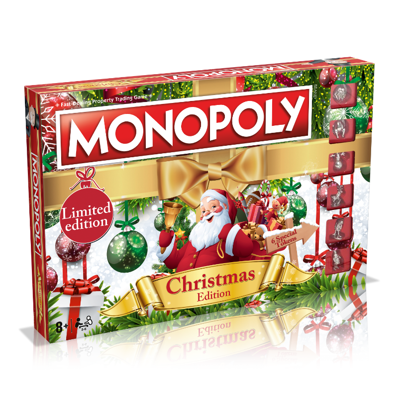 The festive season starts here with this very special Christmas Edition of MONOPOLY! Play as one of six bespoke tokens, including Rudolph, a snowman and Santa himself! Travel around the board collecting your favourite things from the season of goodwill: from Santa and his reindeer, to a full festive feast, via decorating the tree and doing your Christmas shopping, no stocking would be complete with this family favourite.