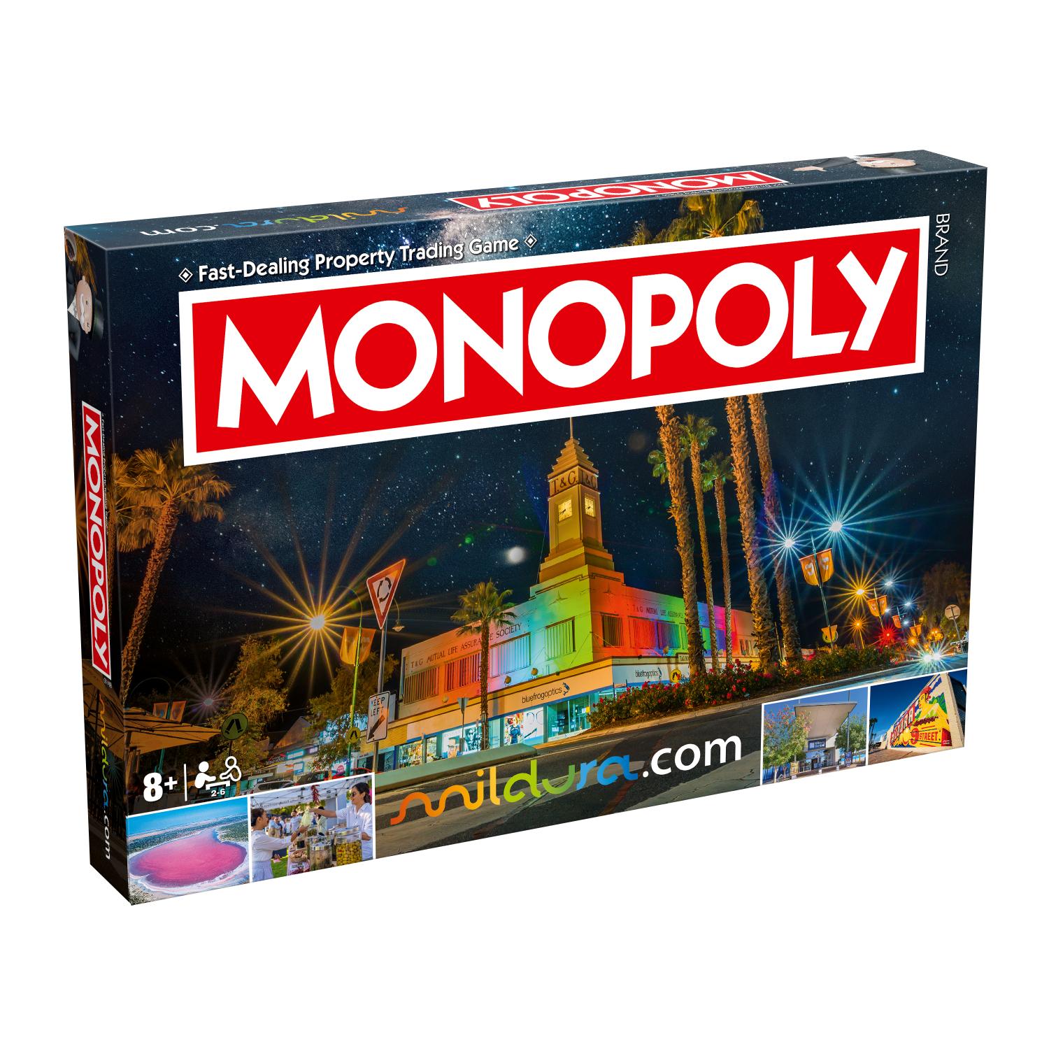 Pay a visit to the sunny and vibrant city of Mildura in this special edition of MONOPOLY. Mildura is renowned for its scenic river landscapes, vibrant arts scene and memorable landmarks and attraction — all of which can be yours, if you can strike a deal. Explore some of Mildura’s most beloved features, from Mildura Arts Centre to Memorial Clock Tower, Rio Vista Historic House and the majestic Murray River. Each location has been specially selected for its local interest and broad appeal. Who will be the first to claim Jaycee Park for their own? Maybe Deakin Avenue will bring you a step closer to success. Featuring stunning and authentic photography from the local area, there’s plenty to enjoy whether you’re a seasoned MONOPOLY expert or a first-time player. So choose a token, roll the dice and seek your fortune!