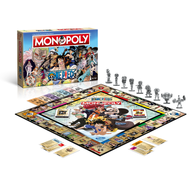 Welcome in Dressrosa! The Straw Hat Crew sneak into Dressrosa and divide into three teams; destroying artificial Devil Fruit factory team, escorting Caeser team and securing Thousand Sunny team. In this special One Piece edition of MONOPOLY, you'll visit all the characters of the anime One Piece as well as trying to get Koala and Soldier over to your side! Chest and Flag cards might reward you for fights against the villains or bring an unexpected surprise... Buy, sell and trade with other fans to get a powerful One Piece team and win the game!