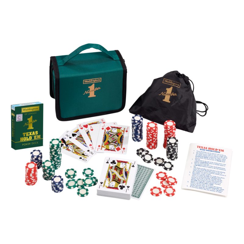 Containing a Waddingtons Number 1 Poker Deck, 160 premium colour Poker chips, and Texas Hold 'em Poker rules in a neat, zip-up travel case, this is ideal for Poker fans when on the move and at home. Perfect for taking a gamble and showing off your poker face wherever you are!