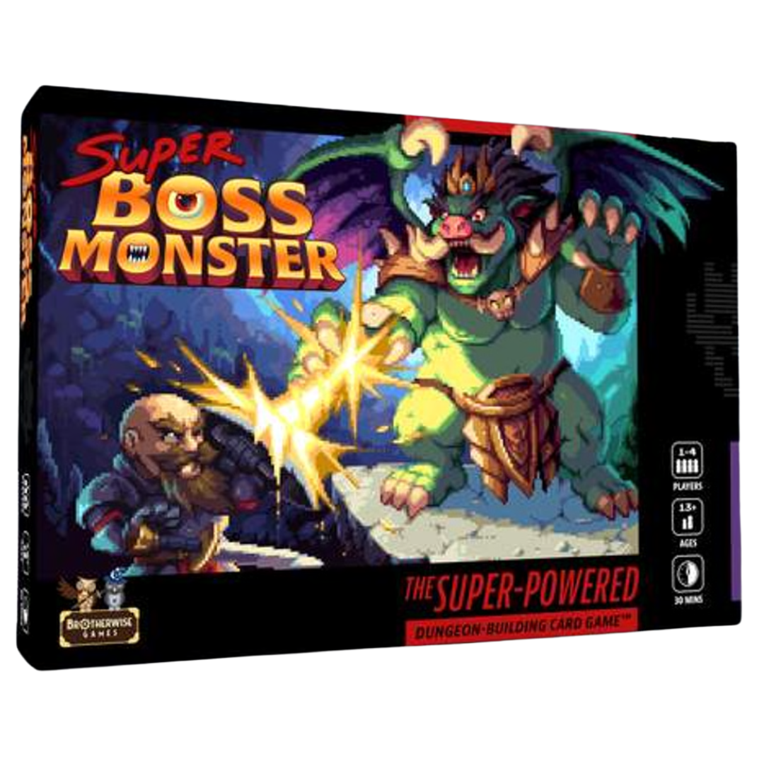 After a decade of dungeon-building fun, Boss Monster is leveling up to the next generation with Super Boss Monster! 1-4 players compete to build the ultimate side-scrolling dungeon by drafting room cards, playing spells, and luring in hapless adventurers.