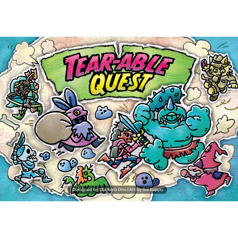 Start a 2-minute timer and start questing! To complete a quest, tear off the exact icons shown on the card (and no extras). Make sure that the icons are fully showing on your torn-off pieces—partials don’t count! You can tear off multiple instances of the active quest to score even more.