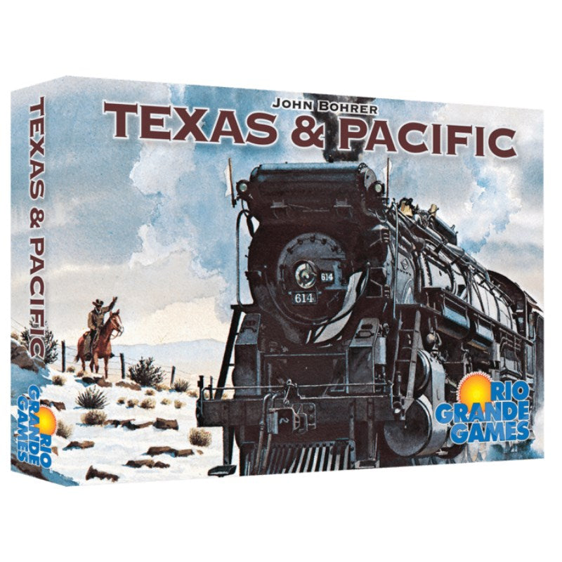 The train depot is a noisy place, with cowboys shouting and cows mooing as they are loaded onto the stock cars of the cattle train. While the steam locomotive hisses as it is refilled with water from the spout, smiling ranch owners think of the riches they will receive once the train reaches Chicago. Some of them were smart enough to buy shares in the Railroad, which finally reached the town this Spring. Business is booming! In Texas & Pacific, 2 to 6 players represent wealthy investors and ranchers in 19th-century Midwest and Texas. Players buy Stock Certificates from the major railroads of the era. They compete to earn the most money during the game by carefully timing Dividend payments and expanding the railroads across the plains to increase the value of their holdings. At the end of the game, the player with the most money is the winner.