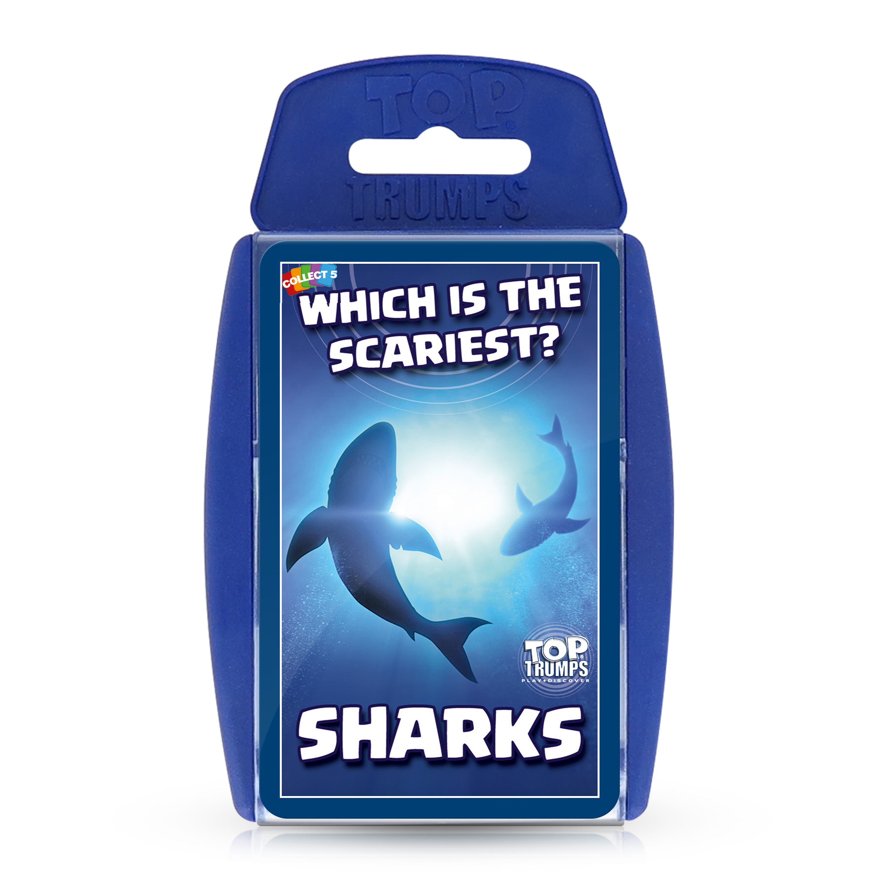 Propel yourself into the seriously surprising world of Sharks Top Trumps! Become closely acquainted with the bull shark, with its 300kg of muscle, it is the shark that has the most registered attacks! Find out more about the infamous great white shark, who can have 3000 sharp teeth at any one time, or the hammerhead shark, whose head is covered in tiny special sensors that help them detect electric fields in the water! This pack includes 30 of your favourite fearsome sharks and is bursting with facts about these fascinating creatures.