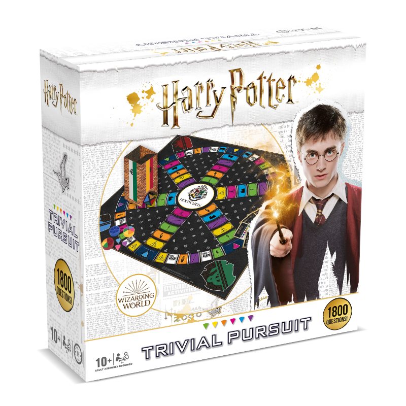 Welcome to Hogwarts! It's your turn to answer questions about the Dark Arts, Objects, Artefacts, Magical Creatures, Witches, Wizards, Locations, spells, and More! Place the special dice in the Hogwarts Tower to choose which house you play as, and then a