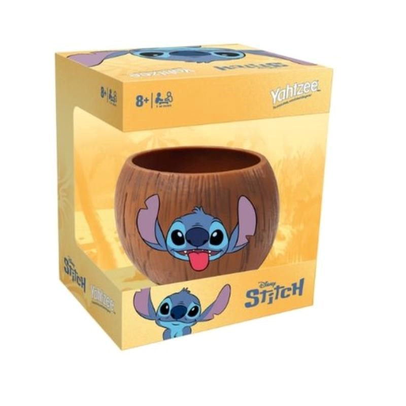 Join the troublemaker with a big heart in this brand new Stitch edition of Yahtzee. It's a great gift or stocking filler for any lover of kids games, childrens games and family games. Ohana means family, and this is the perfect dice set for any family, whetever shape and size they are. Roll the six dice in the special coconut-cup in this novelty Yahtzee and see if you can get a high scoring combination for a fast and gratifying win!